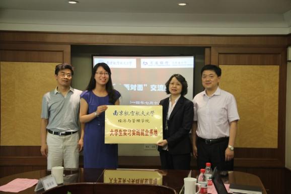 上午,交通银行江苏省分行人力资源部总经理韩波,解放路支行行长张慧、副行长甘勇、御道街支行行长张晨迪及省行人力资源部主管、六位南航优秀校友与经管一行深入座谈。韩波经理首先回顾了交行与南航的渊源,感谢南航向交行输送了大量优秀的学生,然后就交行近年来校园招聘方式、人才考量标准做了详细介绍,并从毕业生职前适应性教育、心理抗压培训等方面对南航学生培养提出了中肯建议。各支行行长、南航校友们从业务层面对南航学生技能型培训、岗位胜任力发展等方面给与了建议。许静副书记从南航人才培养模式、经管专业排名发展、师资及科研方向作了交流,段进东老师详细介绍了经管金融专业发展、课程设置及与交行御道街支行开展的研究生交流工作站现状。交流中双方就学生实习生制度、研究生工作站建设、企业员工培训、行业专项研究等方面达成共识,形成共建协议。最后,许静为院企合作基地授牌,韩波、张慧等六位交行领导受聘为“女优飞机杯 女优飞机杯 企业导师”。