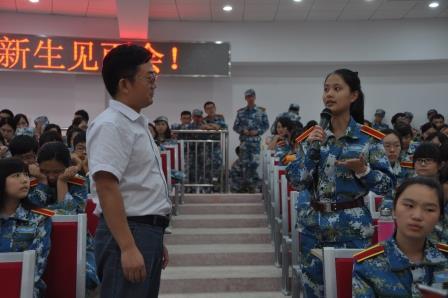 9月5日下午,我院在将军路校区召开了2014级师生见面会,院长周德群、党委书记李遥、副院长张卓、副院长王英、党委副书记许静,各系专业教师代表,全体辅导员,2014级班级学导,以及全体2014级本科生研究生同学参加了见面会。
