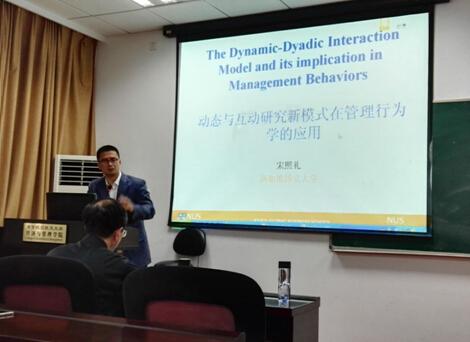 人力资源研究所邀请,来自新加坡国立大学的宋照礼博士于2015年9月11日在704会议室为师生做了题为“人际关系的互动研究新范式及及其在领导力、新员工入职以及工作家庭关系的应用——兼论SSCI期刊投稿、审稿要点”的学术报告。宋照礼博士现任新加坡国立大学商学院组织管理系副教授、亚太中文EMBA学术主任、组织管理系博士委员会主任、博士生导师。报告当天,吸引了众多本院的老师、博士生、硕士生、本科生的参与。