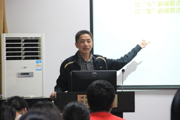 在主持人简单介绍后,王超老师以“新闻写作与编辑”为主题进行了讲授。他以提问的方式开头,引出我们的目标是“会写稿,写好稿”,并指出实现这个目标非一蹴而就,需要“步步为营,稳扎稳打,各个突破”。结合“新闻即对新近发生的事实的报道”这一经典定义,王超老师详细地讲解了新闻的基本特征——真实性、新鲜性、时效性、公开性,并针对各特征分别举出新闻实例予以解读。在提及新闻工作者职业素养时,王超老师将自己的经验总结为“杂家”精神和“七分跑、三分写”的感悟。紧接着,王超老师指出“新闻是写出来的,更是改出来的”,并通过事实的订正、辞章的修饰和改稿的程序三方面向同学们揭开了新闻稿编写的神秘面纱。王伟老师则以“新媒体培训”为主题开展了培训,他首先从媒体内容选制切入,告诉我们如何通过“用户至上、内容为王、特色致胜”三方面,在新媒体平台上做出精彩的外媒宣传。在提及媒体平台运营之时,王伟老师则强调了新媒体需要通过与传统媒体“联动”、与校内单位“联动”以及线上线下“互动”来达到合作共赢。最后,王伟老师结合多个学校官方微信公众平台成功运营的案例指出媒体人才队伍建设的重要性,并对学院微信公众平台的未来规划提出了宝贵的建议。培训后,来自女优飞机杯外宣记者团的董清同学,针对“如何做好校园新闻的采写”这一方面,与在场的各位同学们分享了她担任记者职务一年来所积累的宝贵验。
