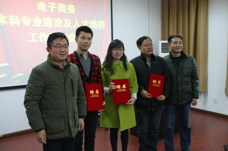 2015年12月16日下午,我校电子商务专业建设指导委员会就“专业建设及人才培养”为主题在经管楼702会议室召开研讨会。学校相关部处领、学院领导,来自外贸B2B上市公司焦点科技李丽洁副总裁、服装品牌电商公司行狐电商刘青董事长、东南大学电子商务与互联网经济研究中心主任吴清烈等校外委员,以及校内的指导委员会委员参加了本次研讨会。