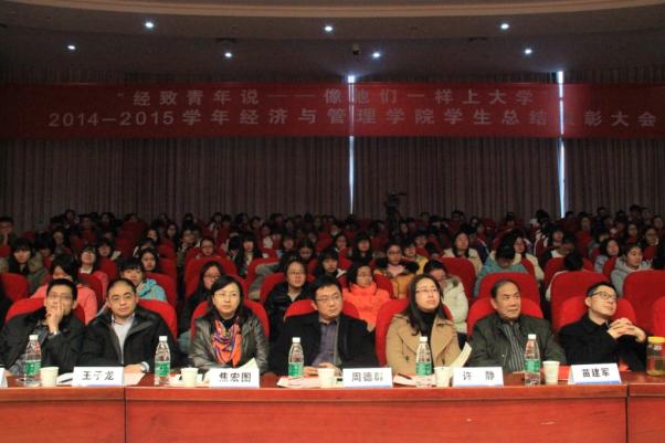 于12月29日下午在主楼报告厅举办了“经致青年说”像他们一样上大学学院学生总结表彰会,学院院长周德群、院党委书记焦宏图、院党委副书记许静、工商管理系主任王子龙、工商管理系副主任张浩、经济系副主任徐菱涓、管理科学与工程系副主任沈洋,以及学院教师代表,400多名学生代表参加。