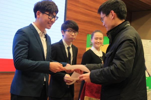 经致青年说分为勤学—少年不知勤学早,白首方悔读书迟,国际化—高度决定视野,角度改变观念,合作—一燕不能成春,一木不能成林,创新创业—与其临渊羡鱼,不如退而结网四个部分,分别邀请了班主任代表苗建军、创业导师王涛、海归教师代表郭旭、刘文龙四位老师分别进行素质解读,之后7名演说者分享2015年的成长故事。