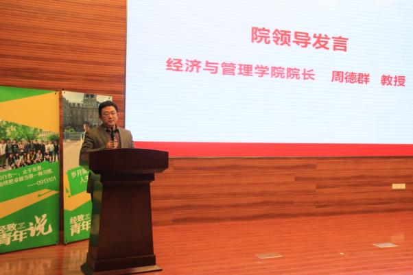 经致青年说之后,学院举行了隆重的表彰,院党委副书记许静宣读了表彰决定,学院领导分别向获得各类荣誉称号及奖学金的学生颁奖。最后,周德群院长以“楷模”为主题,对在场学生表达了自己的期许,他说“榜样的力量是无穷的,楷模是我们前行的动力” “光有理想是远远不够的,还需要小行动”,赢得了阵阵掌声。