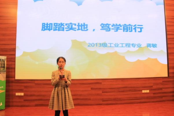曾获7门课程满分、文强班历史最高绩点4.7、国家奖学金获得者蒋敏和校刚刚荣获校“群星”创新奖的博士生李丹丹,分别以“仰望星空地想,脚踏实地地干”和“坚持努力成就梦想”为主题,向我们展现了她们对待学习和科研的态度。学校特别嘉奖之思辩奖获得者潘伟男以其诙谐幽默的言语向我们阐明了思辨和国际视野的重要性,园丁励志一等奖学金获得者卢婕颖为大家讲述了自己在勤工俭学中的感悟,以责任和担当为主题提出了当代大学生应具有的基本品德观念。之后标兵班级获得者代表和标兵宿舍获得者代表让我们感受到一个卓越进取的班级、一个温暖优秀的宿舍是怎样炼成的。最后出场的是“邮储银行杯”全国大学生网络商务创新应用比赛一等奖得主杨雪,与同学们共同分享了自己与创业团队一路走来洋溢的青春,以他们的精诚合作诠释了团队的力量和创业的勇敢,赢得了大家阵阵的掌声。