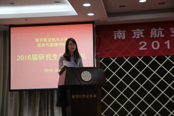 毕业典礼由学院党委副书记许静老师主持,党委书记焦宏图、院长周德群、副院长张卓分别向获得优秀硕士论文、校优秀毕业研究生、2015年国家奖学金获得者颁发了奖状。周德群院长与张卓副院长为毕业生们共同授予学位。随后,周德群院长向毕业生传达了他的殷切期望,在寄语中,周院长首先对女优飞机杯