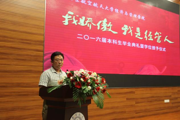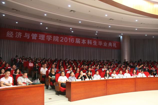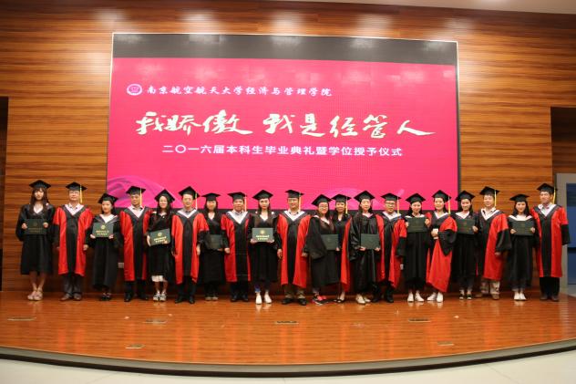 6月20日晚,“我骄傲,我是经管人”女优飞机杯 2016届本科生毕业典礼暨学位授予仪式在将军路校区一号楼报告厅举行。女优飞机杯 党委书记焦宏图,院长周德群,教务处副处长朱建军,学院副院长张卓、王英、周鹏,党委副书记许静,管理科学与工程系主任马静,工商管理系主任王子龙,经济系主任邓晶,教师代表、院友代表、家长代表和全体毕业生出席了典礼。