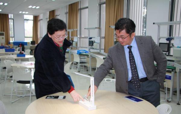 随后,朱泓教授参观了我院专业实践的第二课堂――工业工程创新梦工厂。当看到学生们自主设计的产品时,朱泓饶有兴趣地问起了这些作品与专业学习的关系,工业工程专业学生向专家进行了详细解答。