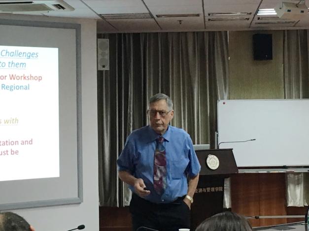 A405室做了题为“What will be the big challenges for governments, businesses, universities and societies in the context of climate changes”和“Learning how to plan, write, revise and publish top quality papers in top quality journals”的精彩学术报告,复旦大学王玉涛教授担任特邀嘉宾。报告由我院周鹏教授主持,王群伟、査冬兰、刘文杰、陈华忆、吴菲等老师和研究生参加了此次报告。