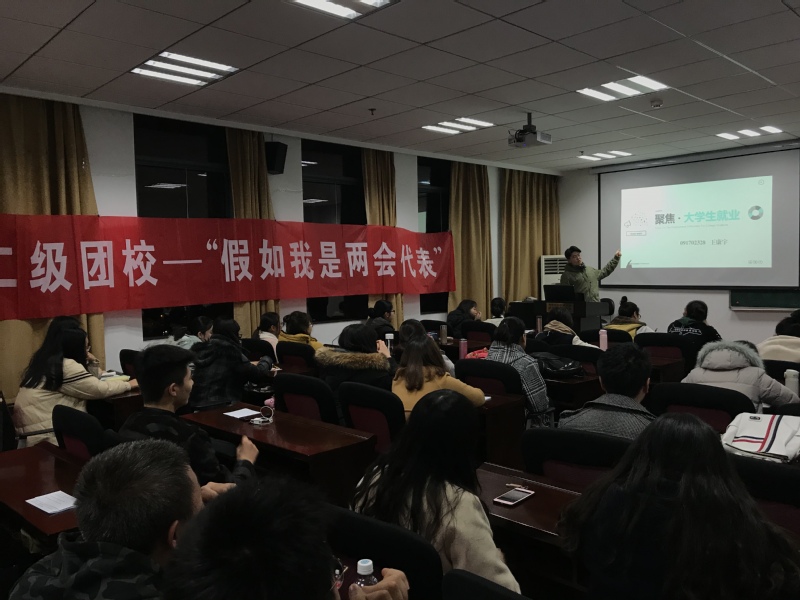 于704教室开展了“假如我是两会代表”主题教育活动,学院团委书记庞依达、辅导员刘小杨和百余名师生参加了此次活动。