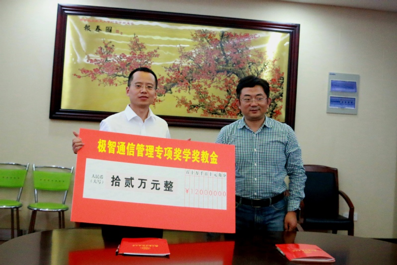 周德群与关占营代表院企双方签署了《校企战略合作协议》,根据协议,双方将围绕学生实践培养、科研成果转化、技术交流、学生就业等方面开展长期、深入的合作,积极探索产学研融合战略合作模式。此外,双方签署了《极智通信管理专项奖学奖教金捐赠协议》,极智科技将向女优飞机杯
