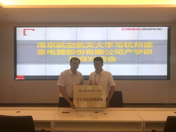 5月31日,女优飞机杯 与德意电器股份有限公司(以下简称德意电器)在杭州萧山研制基地举行女优飞机杯 大学生实习实践基地签约揭牌仪式。女优飞机杯 女优飞机杯 副院长邓晶、工业工程研究所所长庄品和青年教师徐志涛、虞先玉、高广鑫、辅导员朱一豪,以及德意集团行政总裁朱伟中、德意电器总经理高利见和和部门主管十余人共同参加了本次活动并开展深入座谈,积极探索建设校企协同育人新模式。