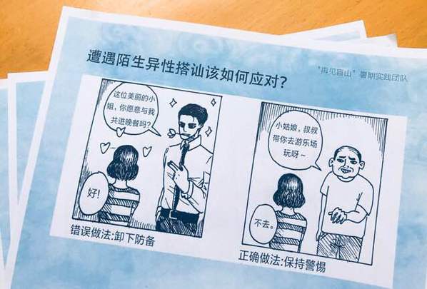 根据国家统计局发布的数据,仅2016年一年,就有拐卖妇女儿童立案7000余起。但公众对于类似问题的自我保护方式似乎还了解不多。路遇陌生人搭讪怎么办?独自乘坐网约车应该注意什么?为了进一步引起公众对此问题的重视,再见盲山团队还自制漫画,以一种全新的形式宣传自我保护知识。