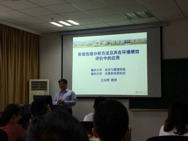 2018年9月22日下午,福州大学王应明教授应能源与环境经济研究所邀请,在704会议室做了题为“数据包络分析方法及其在环境绩效评价中的应用”的学术报告。会议由周德群教授主持,经管院老师朱建军、章玲、查冬兰、吴菲、陈剑、何沙玮等多位老师和众多本科生、研究生参加了此次报告,会议室座无虚席,现场气氛十分热烈。