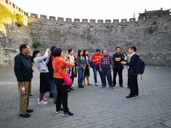 寿县因地处襟江扼淮的重要位置,千百年来一直是兵家必争之地。从秦灭楚到抗日战争,先后发生了17次规模较大的战事。其中“以少胜多、以弱胜强”淝水之战给后人留下了 “投鞭断流”、“围棋赌墅”、“风声鹤唳、草木皆兵”等诸多历史典故。可以说寿县古城墙就是历代战争的历史见证,历经九百多年的沧桑仍然保存至今,这充分反映了中国古代劳动人民的聪明智慧和高超的建筑技艺。安丰塘由春秋时期楚国丞相孙叔敖建于公元前597至公元前591年,与都江堰、漳河渠、郑国渠并称为中国古代四大水利工程,是安徽省首个世界灌溉工程遗产。一路走来,江可申老师的旁征博引和诗情画意地讲述,给党员老师们上一堂生动形象的历史文化课,驻足塘边,夕阳下的安丰塘也显得分外美丽。