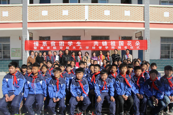 捐书仪式顺利进行,江可申老师作为教师代表致辞,并与教师代表一起将一摞摞崭新的图书赠送给了薛桥小学少先队代表,作为感谢,薛桥小学少先队代表也为老师们系上了鲜红的红领巾。江可申老师还为同学展示了C919模型,激励大家立下搏击长空的远大志向!在亲切的合影留念后,党员同志们结束了以“情系贫困学生,共铸祖国花朵”为主题的捐书活动,转战颍上县的田野之间,通过亲身劳作帮助当地农民收获红薯,同时还通过主动购买,帮助解决了红薯的销售问题,实现了精准扶贫!