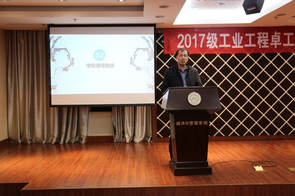 典礼开始,邓晶代表学院领导致辞,他对过去多届卓工师生的努力做出了肯定,希望17级卓工班能以更高的要求完善自己,追求卓越;2015级卓工班优秀学生代表余淼结合自己在卓工班的学习经历,对17级卓工班班级建设等方面提出了自己的建议;刘思峰从马斯洛需求层次理论出发,勉励同学们要努力拥有一个健康、充实、快乐的人生,要“有理想,有追求,有责任,有担当”。他还着眼“生存”和“价值”两个方面,建议同学们要用更多的精力去思考人生价值的实现。