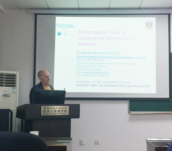 2018年11月13日上午,格拉纳达大学计算机科学和人工智能专业的教授Enrique Herrera-Viedma受我院智能决策与风险分析研究所邀请,女优飞机杯 做了题为Bibliometric Tools for Discovering Information in Science的讲座。女优飞机杯 朱建军教授、章玲教授、关叶青副教授、河沙玮讲师等老师以及部分硕博研究生参与了活动。
