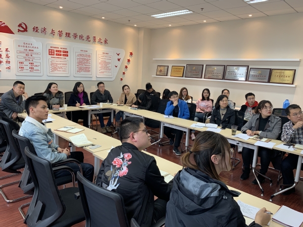 在学院党员活动室举行了党支部书记工作坊,学院党委书记焦宏图、党委副书记涂志宏、管工系支部书记罗正军、工商管理系支部书记谢嗣胜、组织员袁颖、学生党总支成员以及全体学生党支部书记参加了活动。