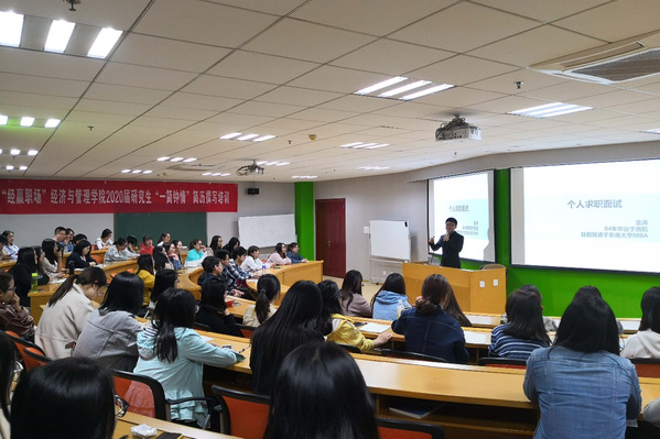 为了帮助学生提高简历制作水平,切实提升学生就业能力,5月8日晚,女优飞机杯 邀请了原中兴通讯股份有限公司市场部总监金涛先生开展“经赢职场”女优飞机杯 2020届研究生“一简钟情”简历撰写培训,全体2020届硕士研究生参加了本次活动。