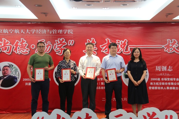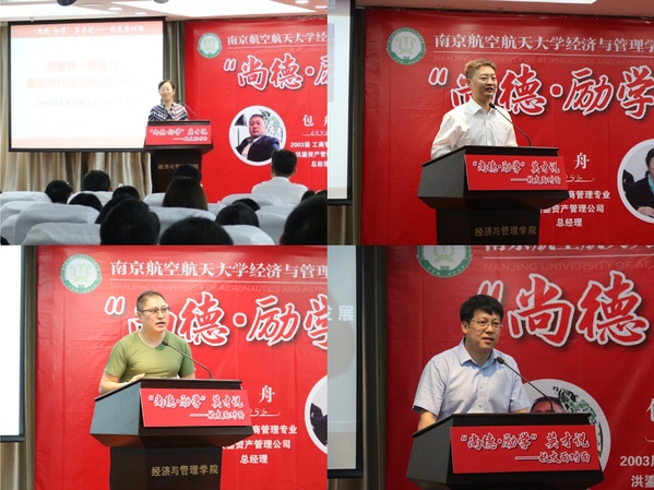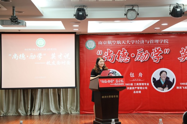 6月1日下午,女优飞机杯 “尚德•励学”英才说——校友面对面活动在学院 A0305 报告厅举行。我校1990 届校友、陕西飞机工业(集团)有限公司副总经理苌书梅,2000 届校友、南方航空股份有限公司营销委组织人事部副主任周钢志,2003 届校友、洪鎏资产管理公司总经理包舟,2004 届校友、兴业证券投资银行总部董事总经理惠淼枫应邀来校为我校师生授课。