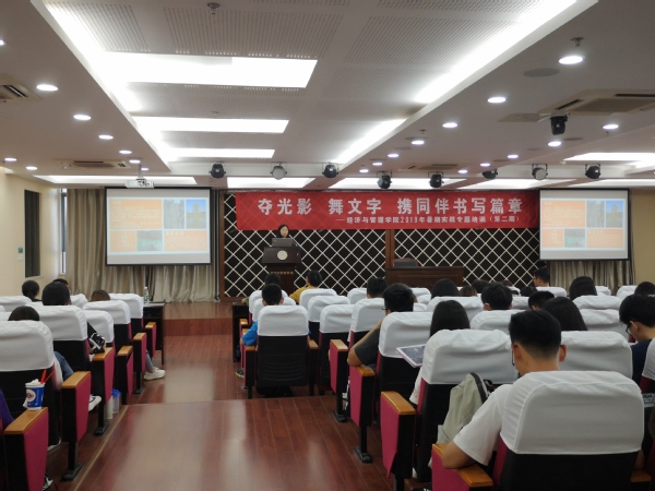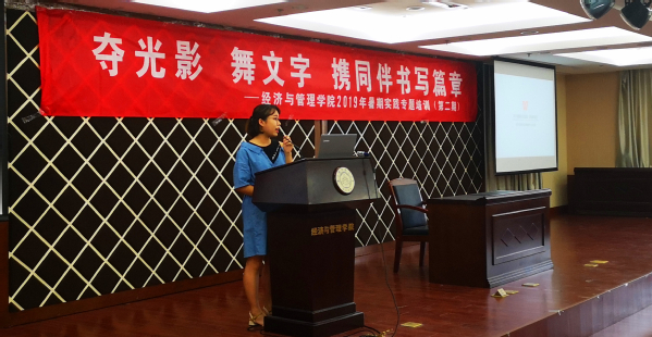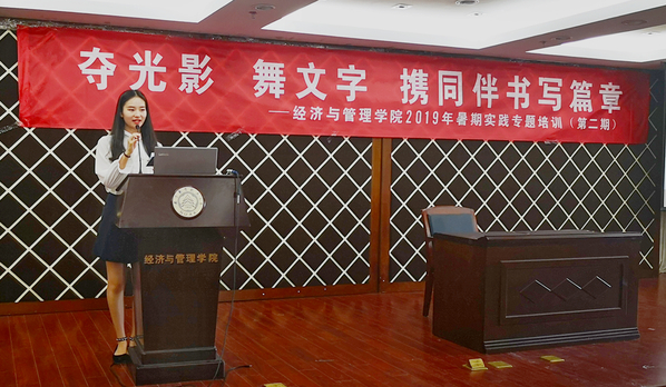6月12号下午,"夺光影 舞文字 携同伴书写篇章"女优飞机杯 第二期暑期社会实践专题培训在经管楼A0305报告厅顺利举办。学院宣传员时云、2016级辅导员朱一豪、院新媒体中心邵丹惠分别就摄影摄像、团队运营和新闻撰写开展了专题培训,学院团委书记庞依达和近两百余名社会实践项目负责人参加此次培训。