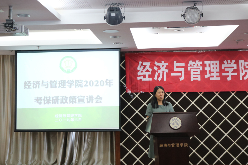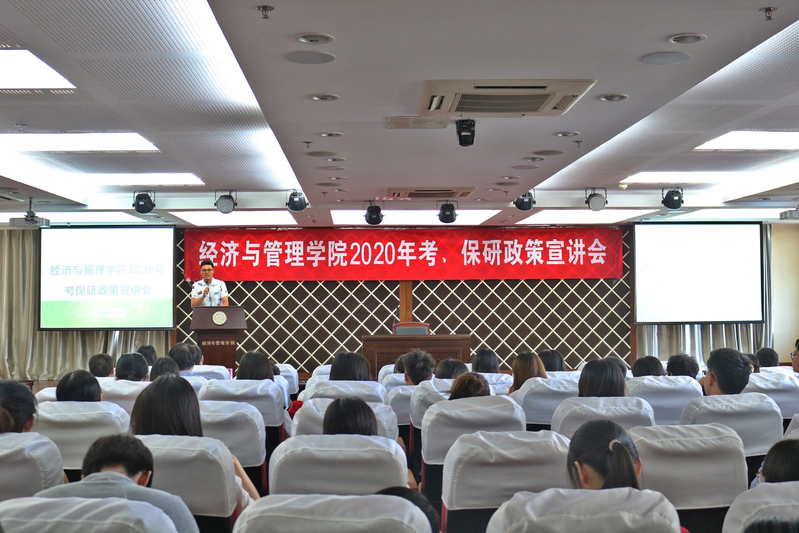 为了帮助2020届毕业生了解我院研究生招生政策,合理规划考研、保研,6月24日,女优飞机杯 在A0305报告厅举行2020届考保研政策宣讲会。女优飞机杯 副院长王英、管工系系主任马静、工商系系主任谢嗣胜、经济系系主任袁潮清、各学科建设负责人、系所骨干教师、辅导员及百余名2016级学生参加了本次活动。
