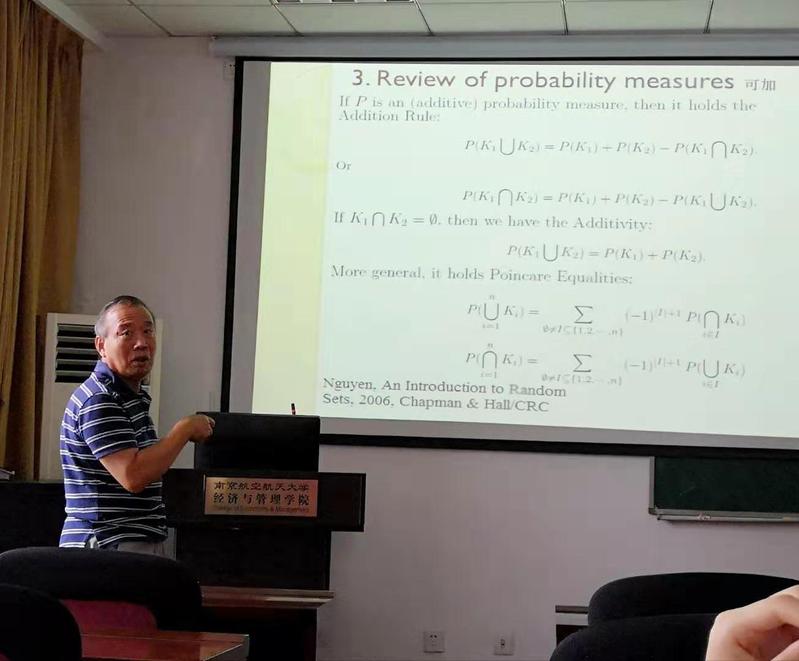 在学术交流中,卫国介绍了一些在不确定性研究中广泛应用的重要理论,主要包括Choquet容量和积分,证据/信念功能登普斯特-谢弗理论,刘思峰的不确定性理论,邓-刘的灰色系统理论。在此基础上,卫国阐述了这些理论之间的联系。最后,告诫大家在进行学术研究时不能脱离实际,要以实际问题为导向,更好的结合实际问题,为解决问题提供可靠的理论指导。