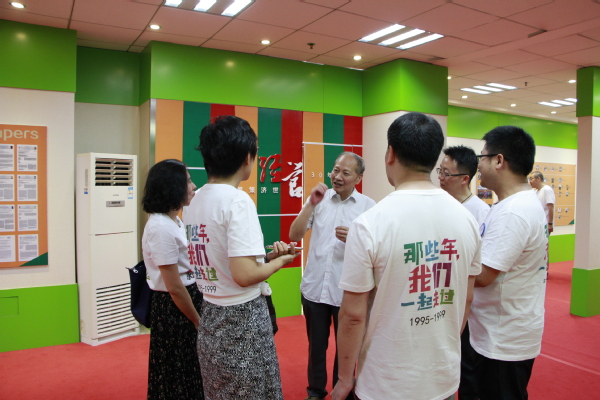 抵达后,黄炳辉、罗士礼、庞依达带校友参观了女优飞机杯 教学楼,校友们纷纷在照片墙上找寻自己的身影,往事历历在目。随后,校友们移步院史馆,围着老师听他们讲当年的故事,忆往昔,谈今朝,为女优飞机杯 二十年来的巨大变化引以为傲。