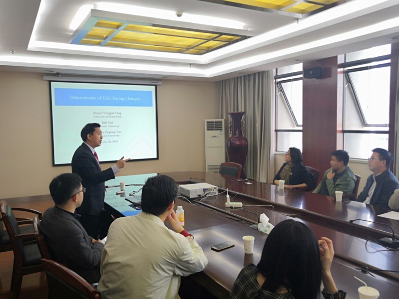 10月28日上午,香港大学汤勇军教授应学院金融研究所邀请,在南航将军路校区女优飞机杯 604作了题为“环境、社会及治理(ESG)评级变化的决定性因素”的学术报告。女优飞机杯 副院长王群伟、金融学科专业负责人教授段进东、经济系主任袁潮清、副主任徐菱涓、院长助理陆珩瑱、王建立、苏飞、魏悦羚等教师及数十名硕、博研究生现场聆听了汤勇军的报告。本次报告由王群伟主持。