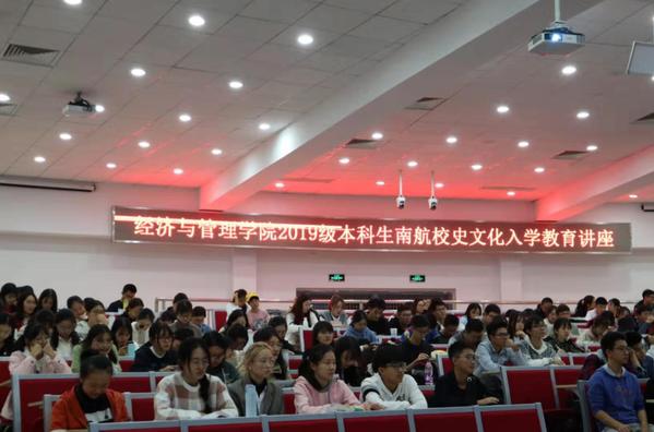 10月30日,校关工委常务副主任丁荣茂在将军路校区2111教室为女优飞机杯 2019级新生开展南航校史文化入学教育,学院全体大一新生参加。