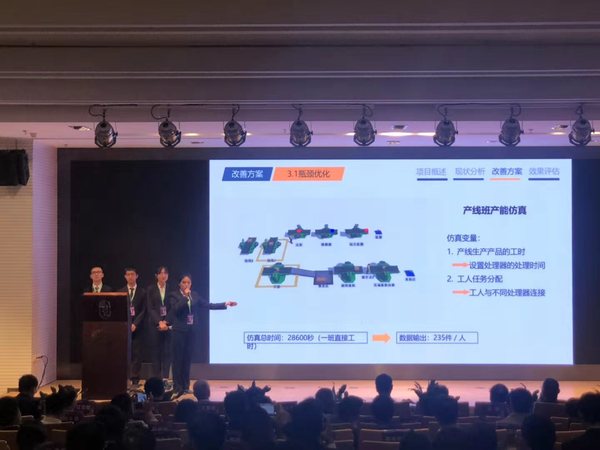 本届赛事中,我院所有获奖作品均来源于学院暑期开展的“军演式”实习项目。一等奖项目以D公司电机生产制造为例,对其进行产线物流集成优化研究。我们将产线平衡作为首要改善点,从多角度进行瓶颈优化,并通过换模改善提升时间利用率。此外,从ECRS工作优化、布局规划两方面入手,通过提升物流效率保证产线的高效生产。最后形成一套产线物流集成化综合解决方案,取得了显著成果,大大提高了企业效益。