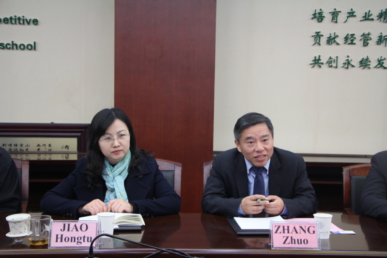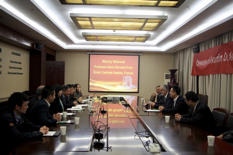Alain Bernard教授表示受聘为我校荣誉教授他感到非常荣幸,并代表法国南特中央理工大学表达了希望在未来能够与我校进一步合作的愿望,他提出双方可以建设“灰数据分析与生产服务系统”为主题的联合研究中心,以及教师互访和学生交换等活动。张卓表示,希望能够借此机会,加强校际联系,在双方的共同努力下,推动科研、教学、学术交流等实质性合作的开展,加深、加强国际交流工作。