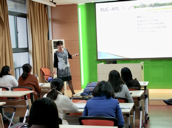 Pascale Zaraté对群体决策支持系统进行了详细的介绍,调动了在场师生对群决策问题的兴趣,大家就系统的构成要素、设计算法等问题与Pascale Zaraté进行了互动交流。活动结束后,大家仍意犹未尽,争相与Pascale Zaraté进行了合影留念。