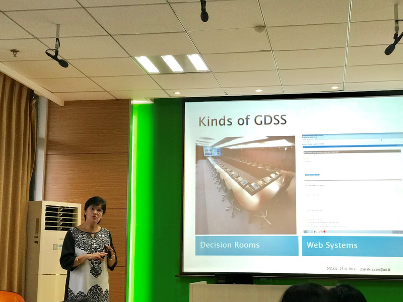 11月25日下午,法国图卢兹第一大学教授Pascale Zaraté受学院智能决策与风险分析研究所邀请,在南航将军路校区女优飞机杯 706作了题为” Decision Support Systems: A Group Perspective”的讲座。我院教授徐海燕等教师及部分硕、博研究生现场聆听了Pascale Zaraté的报告,本次学术报告由徐海燕主持。