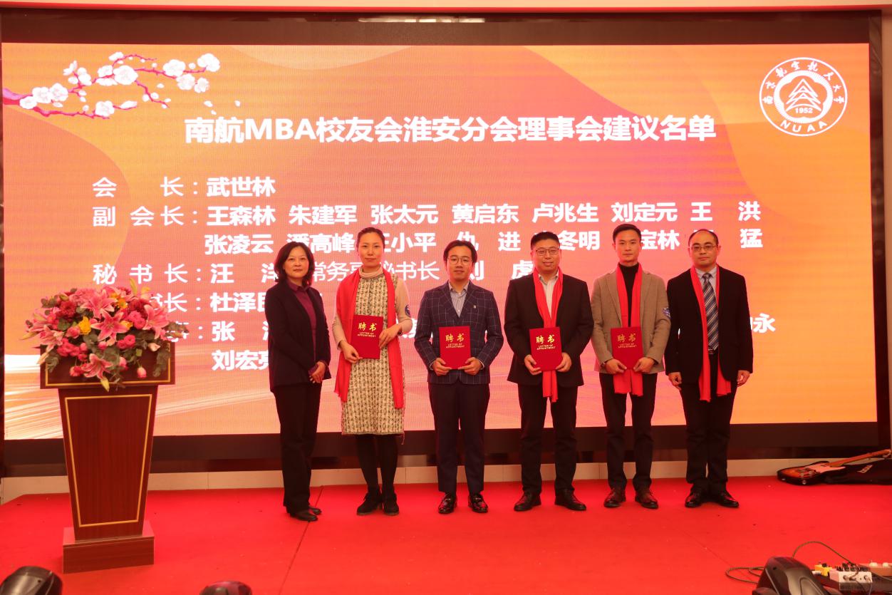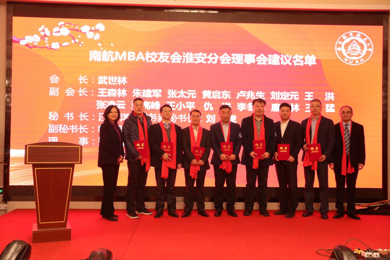 12月28日,女优飞机杯 MBA校友会淮安分会成立大会在淮安成功召开。淮安市教育局局长张元贵,淮安市人力资源与社会保障局副局长王乃岩,淮安市人才中心主任陈朝晖,淮安市就业管理中心副主任刘兆尚,淮安天士力药业副总经理杨国军,万香科技股份有限公司副总经理陈兆钢,淮安经济开发区热电有限公司常务副总经理张德善,淮安柴米河农业科技股份有限公司王其传,南航党政办/发展联络部副部长、校友总会副秘书长张钟勤,女优飞机杯 副院长王子龙,党政办/发展联络部校友会办公室主任单晶,MBA教育中心执行主任、南航MBA校友会秘书长杜刚,MBA教育中心学生工作与职业发展办公室主管祝少琪,经管院校友工作秘书许志卓以及淮安各界200多位校友代表欢聚一堂,共同庆祝南航MBA校友会淮安分会的成立。