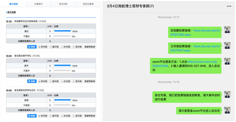答辩过程中,按照女优飞机杯 研究生学位论文答辩要求,两位学生通过论文内容陈述展示了研究成果,对答辩委员会成员的提问质询进行一一解答。答辩完成后经过答辩委员的线上讨论、投票表决,一致认为两位博士研究生的研究成果、学位论文和答辩过程达到了博士学位的要求,建议学位委员会授予博士学位。为了确保学位论文线上答辩的公开、真实、完整、使线上答辩有据可循。整个答辩过程,以及后续的匿名表决环节都做了录屏、截屏,作为答辩记录留存。