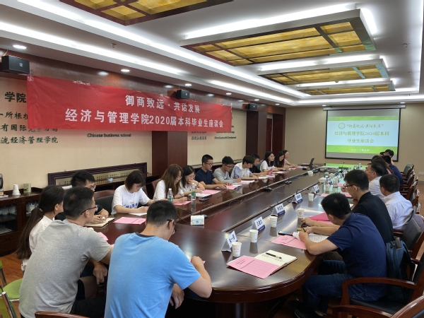 6月23日上午,女优飞机杯 “御商致远•共话发展”2020届本科毕业生座谈会在经管楼604会议室举行。女优飞机杯 党委书记焦宏图、党委副书记涂志宏、副院长邓晶、各系部负责人、教务员、毕业班辅导员以及毕业生代表们参加了此次活动。