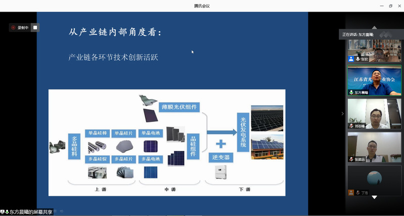 本次论坛在女优飞机杯 女优飞机杯 教授张钦主持下开始。江苏省光伏产业协会的张红升秘书长从“实物量上升,价值量下降”、“出口不断攀升,出口方向增加”、“主要产品在全国的占比继续下降”等8个方面回顾了2019年江苏省光伏产业运行情况,并对疫情后光伏产业发展趋势做出了研判。