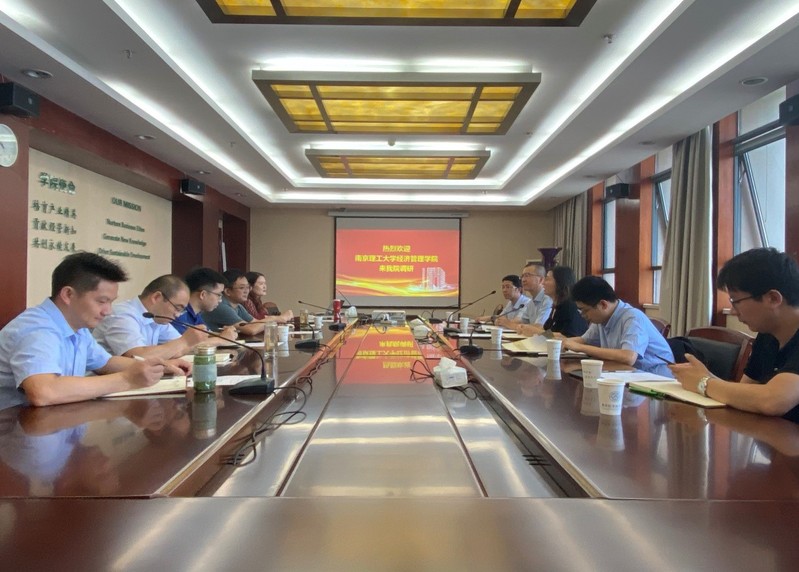 8月24日上午,南京理工大学经济管理学院韩晓梅院长、臧强书记、王玉东副院长、游鹏副书记一行来我院走访调研。院长周德群、党委副书记涂志宏、副院长邓晶、王子龙、王群伟、谢乃明陪同调研。