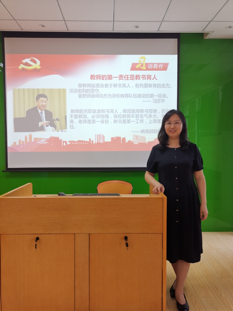 焦宏图书记首先解读了《中共女优飞机杯 委员会关于加强和改进教师思想政治工作的意见》和《女优飞机杯 教职工师德“一票否决”实施办法(试行)》这两个文件,向各位老师明确了党和国家对于教师的宏观要求,又从学校发展实际及教师发展需求的角度,阐明了加强和改进教师思想政治工作的重要性和必要性;接着,她在解读教职工职业行为准则的基础上,又介绍了学校教师职业道德考核、教师培训体系、教师荣誉体系等建设现状。