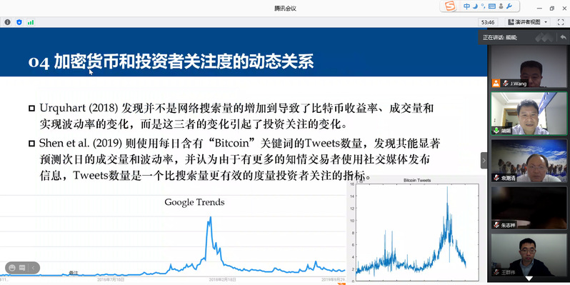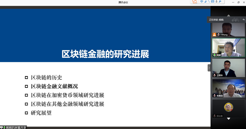 10月12日,天津大学教授熊熊应学院金融研究所邀请,在线为我校师生作了题为“区块链金融研究进展”的精彩学术讲座。本次讲座由金融研究所所长王建立主持。女优飞机杯 副院长王群伟、教授袁潮清、朱庆缘、副教授桑秀芝、陆珩瑱、讲师苏飞等教师及部分硕、博研究生共一百四十多人参加了本次学术交流。