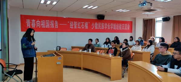 12月4日,女优飞机杯 “青春向祖国报告——‘经管红石榴’少数民族学长学姐经验交流会”在女优飞机杯 A0304教室举行,院党委副书记涂志宏、辅导员代表、2017级少数民族优秀学生代表以及40余位2020级少数民族学生参加了本次活动。
