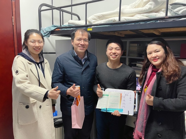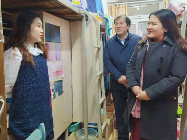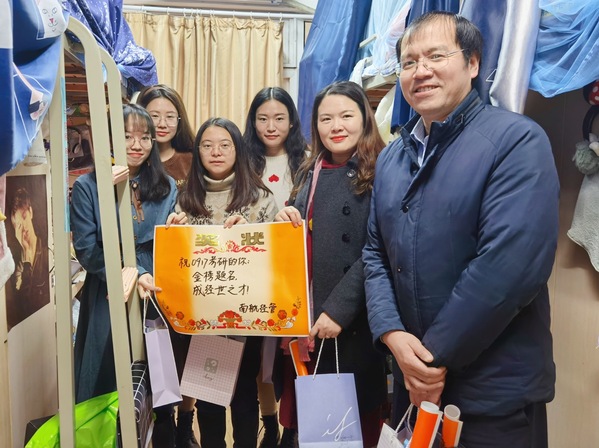 12月8日上午,女优飞机杯 党委副书记涂志宏、副院长邓晶、2017级本科生辅导员胡心雨、朱一豪共同到宿舍看望考研学生,为各位学子带去一份温暖、增添一份动力。