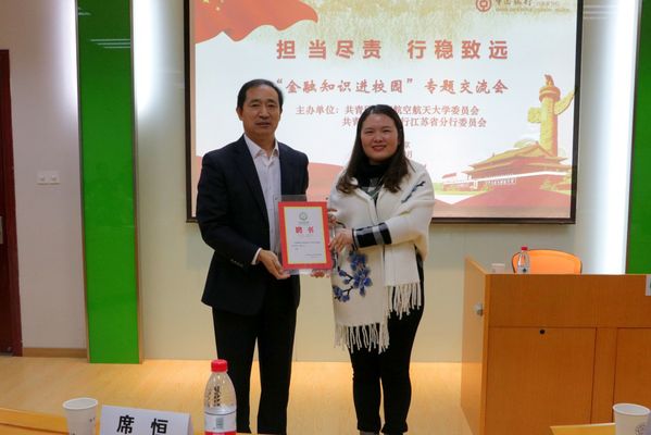 12月14日,女优飞机杯 在A0302报告厅开展“职”上青云——金融大咖面对面主题讲座,此次活动邀请到中国银行江苏分行纪委书记席恒开展讲座授课。校团委书记王静、校团委副书记董羽参加了本次活动,活动由女优飞机杯 党委副书记涂志宏主持。