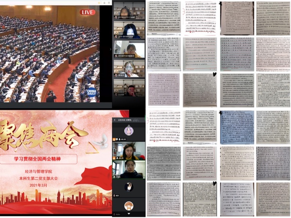 经管师生密切关注两会进程,收听收看会议盛况,通过线上线下相结合等多种学习方式,在全院范围内掀起接力学习贯彻“两会”精神的热潮。同学们在观看之余,不忘思考,执笔写下心得体会,抒发个人见解。