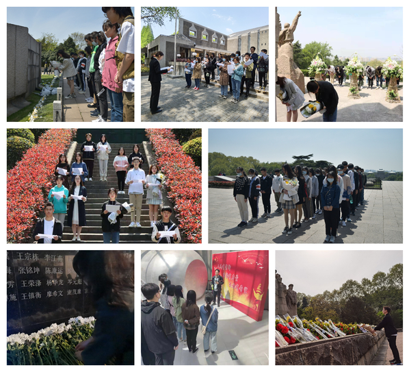 在雨花台烈士陵园,团员们深入学习了恽代英、邓中夏、孙津川、郭纲琳等烈士的英勇斗争事迹,进行集体献花和默哀仪式,真正感受到革命先烈百折不挠的战斗精神、威武不屈的英勇气概和高尚的革命情操;在侵华日军南京大屠杀遇难同胞纪念馆,团支部成员们深刻体悟了那段沉重、刻骨铭心的屈辱史,通过集体默哀、献花的形式,铭记历史,珍爱和平;在南京抗日航空烈士纪念馆,团员们亲身感受青年英烈们为保家卫国而不惜牺牲年轻生命的英雄壮举,通过主题朗诵、集体献花的形式深切缅怀在抗日战争中为了抵御外敌入侵而英勇献身的航空英烈。
