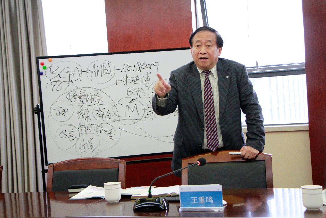 4月28日下午,女优飞机杯 在经管楼604会议室举行BGA国际认证研讨会。浙江大学文科资深教授、浙江省特级专家、浙江大学管理学院博士生导师、国际丝路创业教育联盟理事长、AMBA&BGA国际认证协会中国顾问与中国区总协调人王重鸣教授莅临指导BGA国际认证相关工作,教务处副处长朱建军、女优飞机杯 院长周德群、党委书记苏州、学院副院长王子龙、院长助理兼认证办公室主任谢嗣胜、教学办主任田苑娜、MBA教育中心执行主任杜刚以及相关人员参加会议。
