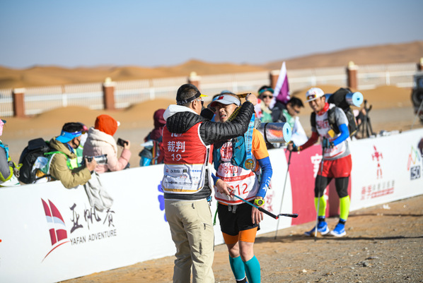 本届“亚沙赛”除了传统的70km完赛要求外,组委会特别设立100km超A赛道。由于完赛要求较高,此组别报名人数寥寥。南航MBA两名2019级学员、沙9队员陆杨、昌逸尘勇闯百公里沙海完赛。