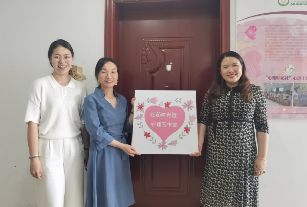 最后,胡心雨带领大家参观了“心苑时光社”心理工作站,女优飞机杯 划拨506办公室作为心理健康室,为心理健康教育提供场地支持,开设“心灵图书&解压角”,摆放有关心理减压、人际交往、导学关系等方面的心理书籍和减压工具,旨在为学生创造一个舒缓心情的绝佳场所。涂志宏、陈瑜共同为心理工作站以及心灵解压角挂牌。